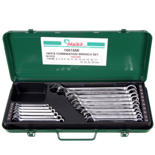 Набір ключів комбінованих 6-24 мм 16 пред. метал кейс (16616MI) HANS