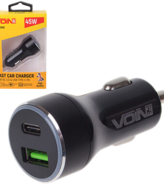 Автомобільний зарядний пристрій VOIN 45W, 1USB QC3.0 18W + 1PD 27W, 12/24V