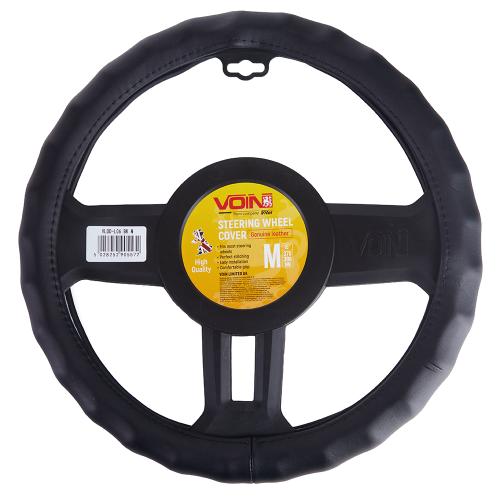 Чохол-оплетка на кермо VOIN VLOD-L892 натуральна шкіра + перфорація, чорний, M