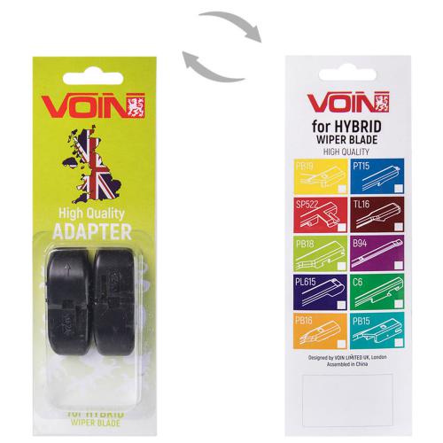 Адаптер VOIN для гібридних склоочисників (HIBRID) із кріпленням SIDE PIN 5×22 мм і 5×17 мм забезпечує швидке і просте встановлення щіток на більшість сучасних автомобілів. Універсальний розмір адаптера робить його сумісним з широкою лінійкою гібридних двірників.