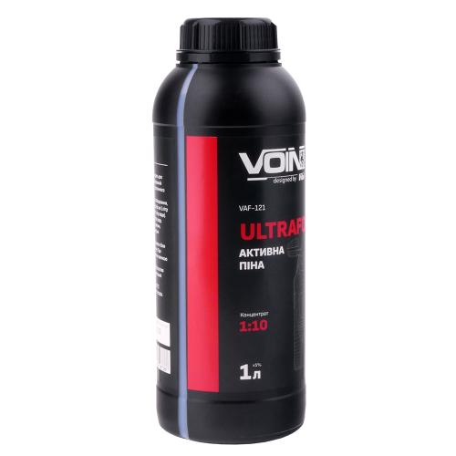 VOIN UltraFoam — це активна піна для безконтактної мийки легкового та вантажного транспорту. Концентрований, безфосфатний, лужний, мийний засіб з високим піноутворенням для миття легкових та вантажних автомобілів з метою видалення дорожнього бруду, пилу, олії, слідів комах, пташиного посліду, забруднень від агресивного впливу навколишнього середовища. Може використовуватися на усіх типах обладнання (пінокомплекти, піногенератори, розпилювачі тощо). Ефективно працює з усіма типами води (жорстка, з високим вмістом заліза, кислот). Показує хороший результат при низьких температурах. При використанні пінокомплекту засіб має густу, стійку піну, завдяки якій довше тримається на поверхні. Завдяки унікальному складу засіб забезпечує швидке та ефективне видалення застарілих забруднень. Повністю змивається звичайною водою. При правильному використанні згідно інструкції – безпечний для лакофарбового покриття, деталей з хрому, пластику, гуми.