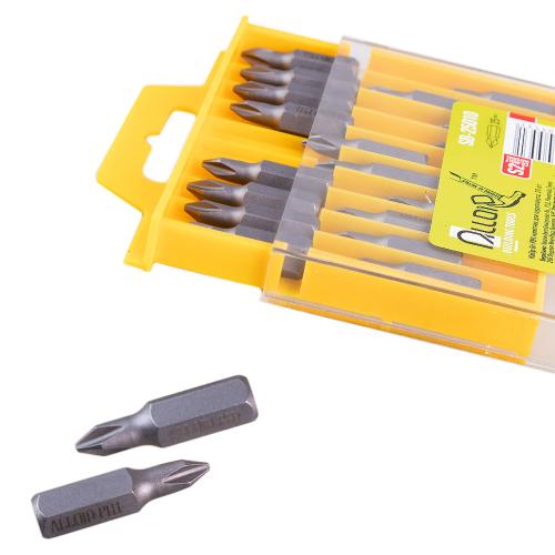 Кожну біту зроблено з високоякісної S2 сталі, що робить їх дуже міцними та довговічними. Такий матеріал дозволяє легко справлятися навіть із важкими завданнями, забезпечуючи високу міцність та стійкість до зношування.
