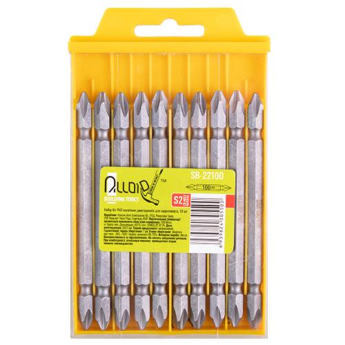 Набір біт магнітних Alloid SB-22100, спеціально розроблений для забезпечення зручного й ефективного використання електроінструменту у різних будівельних і ремонтних завданнях. Набір включає 10 подвійних біт довжиною 100 мм кожна, що забезпечує широкі можливості й варіативність застосування.