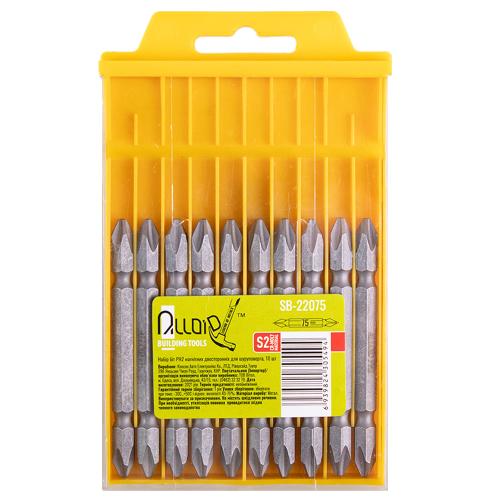 Набір біт магнітних Alloid SB-22075, спеціально розроблений для забезпечення зручного й ефективного використання електроінструменту у різних будівельних і ремонтних завданнях. Набір включає 10 подвійних біт довжиною 75 мм кожна, що забезпечує широкі можливості й варіативність застосування.