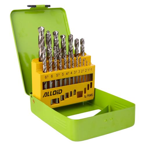 Набір свердл по металу Alloid DB-19110 складається з 19 свердл діаметром від 1 до 10 мм. Набір укомплектовано зручним та надійним металевим кейсом з шарнірним механізмом та пластиковим тримачем для свердл всередині.
