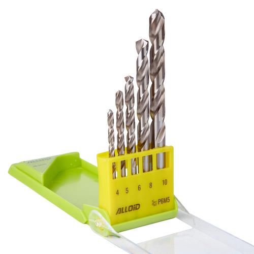 Набір свердел по металу Alloid Р6М5 — 5 свердел діаметром 4, 5, 6, 8 і 10 мм зі швидкорізальної сталі для точного свердління металу, пластику та дерева. Матеріал Р6М5 забезпечує стійкість до перегріву та механічних навантажень, що дозволяє працювати на високих обертах без втрати гостроти ріжучої кромки. Циліндричний хвостовик підходить до стандартних патронів дрилів і свердлильних верстатів.