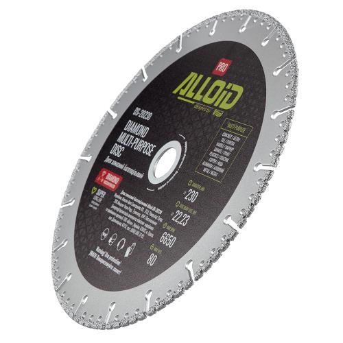Алмазний багатоцільовий диск Alloid Pro 230 мм підходить для використання у професійних майстернях, на будівельних об’єктах і в ремонтних роботах, де важлива універсальність інструменту та стабільна ефективність при різанні різних матеріалів.