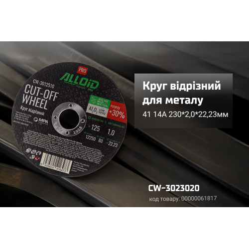 Alloid Pro. Круг відрізний для металу 41 14А 230 2,0 22,23мм