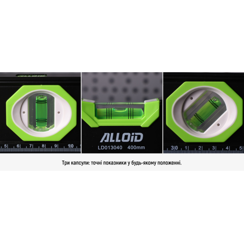 Alloid Pro. Рівень будівельний 40см, 3 капсули з магнітом