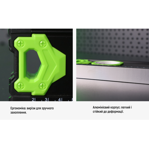 Міцний алюмінієвий корпус, вбудовані магніти й ергономічна форма роблять цей рівень ідеальним вибором як для будівельників і монтажників, так і для домашніх майстрів.