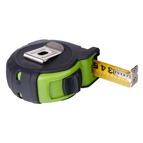 Кожен елемент продумано: міцна стрічка 25 мм не згинається при вильоті й тримає форму, автостоп фіксує стрічку одразу після вилучення — зручно працювати однією рукою, чітка метрична шкала легко читається, прогумований корпус амортизує удари й витримує падіння, металева кліпса надійно фіксується на поясі,