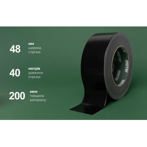 Alloid Pro. Скотч армований посилений 200мкм (чорний) 48мм*40м (RT-2004840)