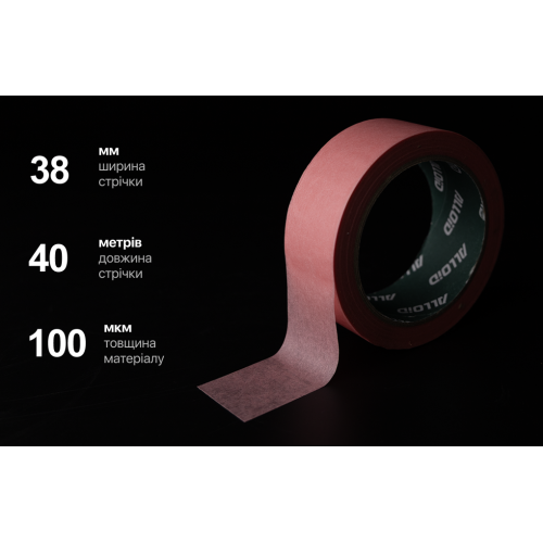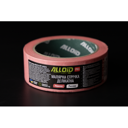 Стрічка малярська делікатна Alloid Pro рисова рожева 38 мм × 40 м, 100 мкм