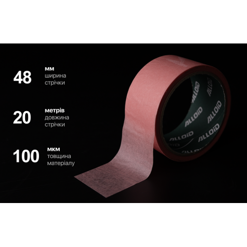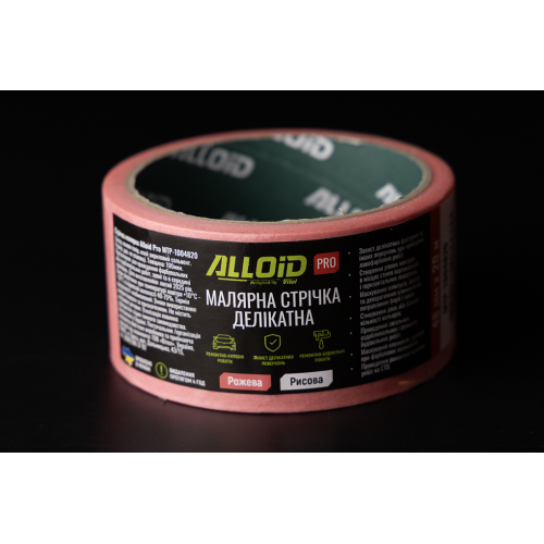 Alloid Pro. Стрічка малярська делікатна, рисова, рожева 48мм х 20м, 100мкм