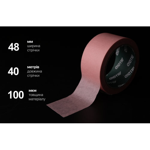 Alloid Pro 48 мм × 40 м — професійна малярна стрічка з японського рисового паперу, створена для делікатного маскування при оздоблювальних і фарбувальних роботах. Завдяки великій довжині рулону (40 м) і ширині 48 мм — ідеальне рішення для масштабних проєктів.