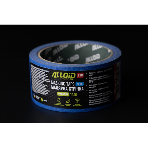 Малярська стрічка Alloid Pro використовується для маскування поверхонь під час фасадних і внутрішніх робіт. Вона підходить для фарбування в один або кілька кольорів, захисту суміжних зон і створення рівних ліній без підтікання фарби.