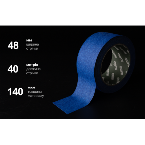 - Ширина 48 мм — зручна для маскування широких рам, профілів і стиків за один прохід без нахлесту кількох смуг