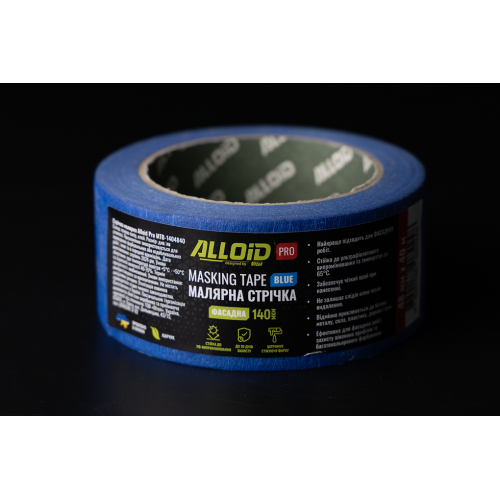Малярська стрічка Alloid Pro MTB-1404840 призначена для маскування поверхонь, які не повинні контактувати з фарбою, штукатуркою або шпаклівкою. Широкий формат 48 мм особливо зручний при роботі з великими площами: захисті фасадів, рам, вікон, дверей і стиків. Стрічка підходить як для зовнішніх будівельних об’єктів, так і для внутрішніх оздоблювальних робіт.