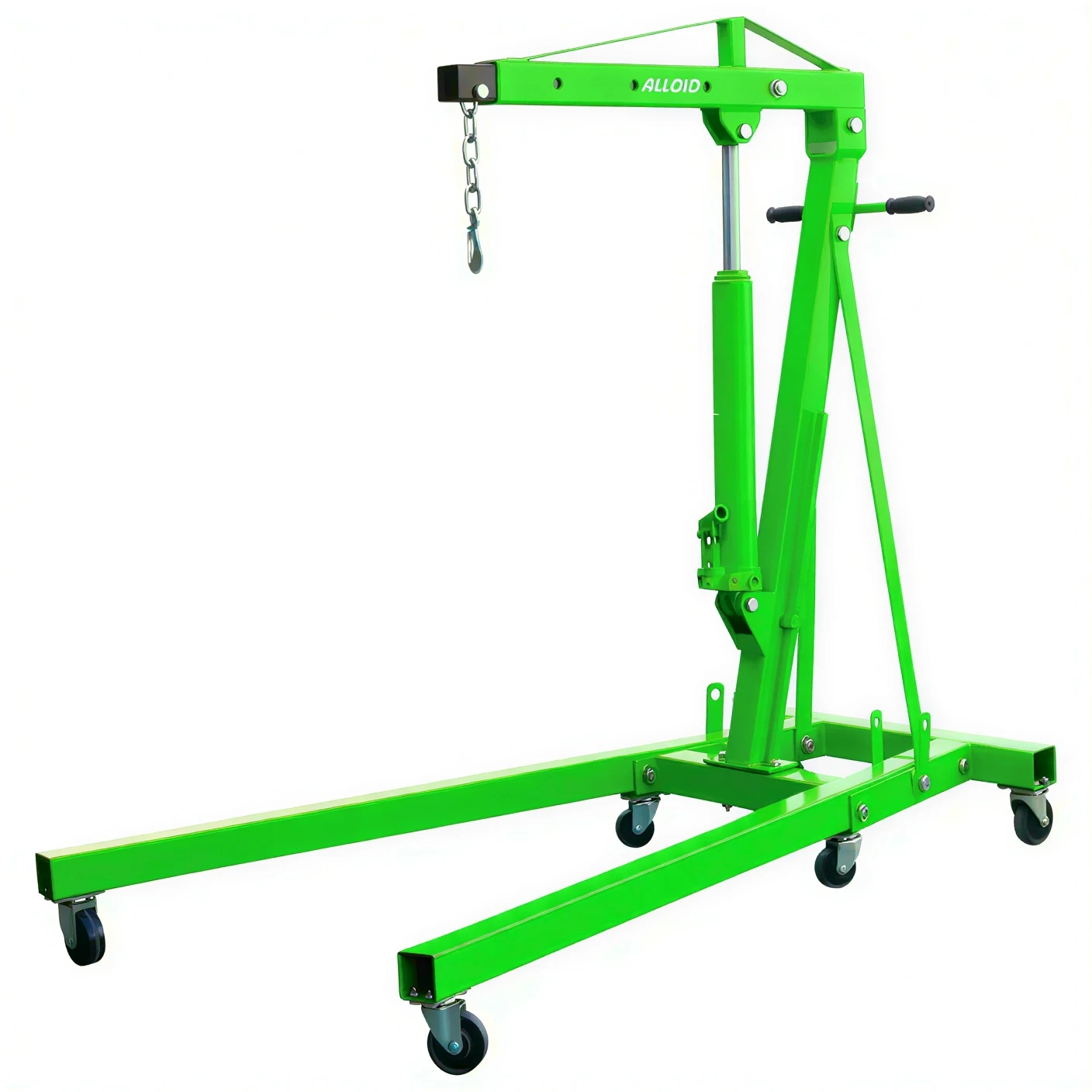 Кран гідравлічний Alloid 2 т — це надійне вантажопідйомне обладнання, призначене для роботи з важкими автомобільними агрегатами. Завдяки посиленій конструкції та гідравлічному приводу він забезпечує контрольоване піднімання і переміщення двигунів, коробок передач та інших вузлів. Складана конструкція дозволяє зручно зберігати кран навіть у обмеженому просторі.
