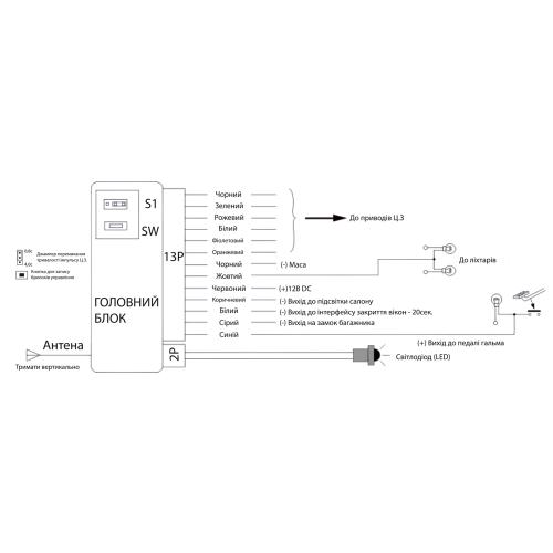 Блок підтримує підключення до габаритних вогнів або покажчиків повороту для візуального підтвердження замикання та відмикання дверей. Це дозволяє водієві впевнитися у коректному спрацюванні системи навіть на відстані та в умовах підвищеного шуму, коли звуковий сигнал не чутний.
