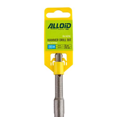 Бур для бетону Alloid 16×210мм використовується в перфораторах з типом кріплення SDS-plus для свердління отворів в бетоні, цегляній кладці, камені, граніті.