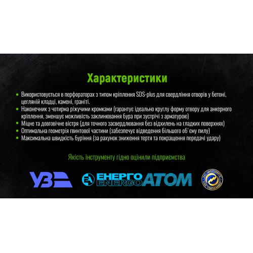 Бур Alloid QUADRO 14×160 мм призначений для роботи з перфораторами з кріпленням SDS-plus та використовується для свердління отворів у бетоні, цеглі, камені, граніті. Чотирикромковий наконечник гарантує ідеальну форму отвору та знижує ризик заклинювання при зустрічі з арматурою.