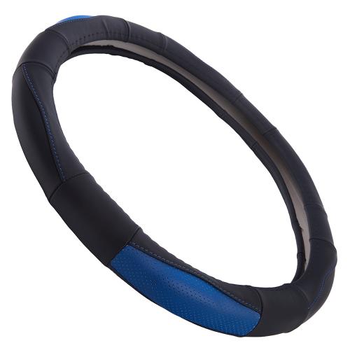 Чохол на кермо VLOD-L285 BK/BL M чорно-син/БО/перф/шкіра