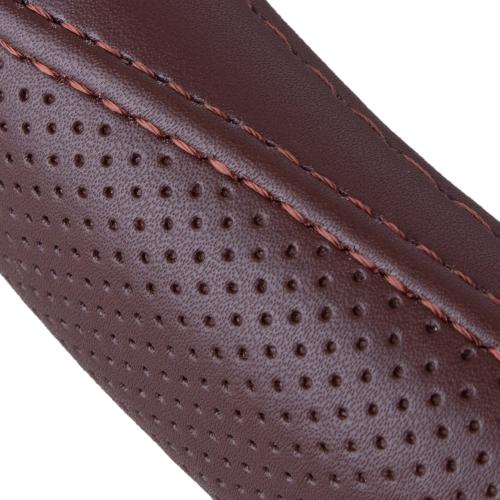 Чохол на кермо VOIN-LF2161 BR M виготовлений з високоякісної шкіри коричневого кольору та призначений для автомобільних керм. Це стильний і зручний аксесуар, що не тільки надає вашому салону елегантний вигляд, але й покращує зручність керування. Завдяки одному шву і плоскому дизайну, чохол ідеально прилягає до керма, забезпечуючи комфорт і захист від зносу.