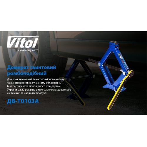 20 років на ринку України і десятки тисяч задоволених клієнтів підтверджують якість і надійність товарів ТМ Витол. Купуючи гвинтовий ромбоподібний домкрат ДВ-Т10103А, Ви будете готові до будь-яких викликів, які може кинути вам автомобільне життя.