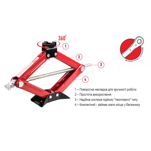 Домкрат гвинтовий “ромб” з тріскачкою 1,5 т, висота підйому 390мм. 2,7кг (BBC-1500T)