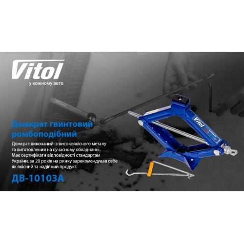 20 років на ринку України і десятки тисяч задоволених клієнтів підтверджують якість і надійність товарів ТМ Витол. Купуючи гвинтовий ромбоподібний домкрат ДВ-10103А, Ви будете готові до будь-яких викликів, які може кинути вам автомобільне життя.