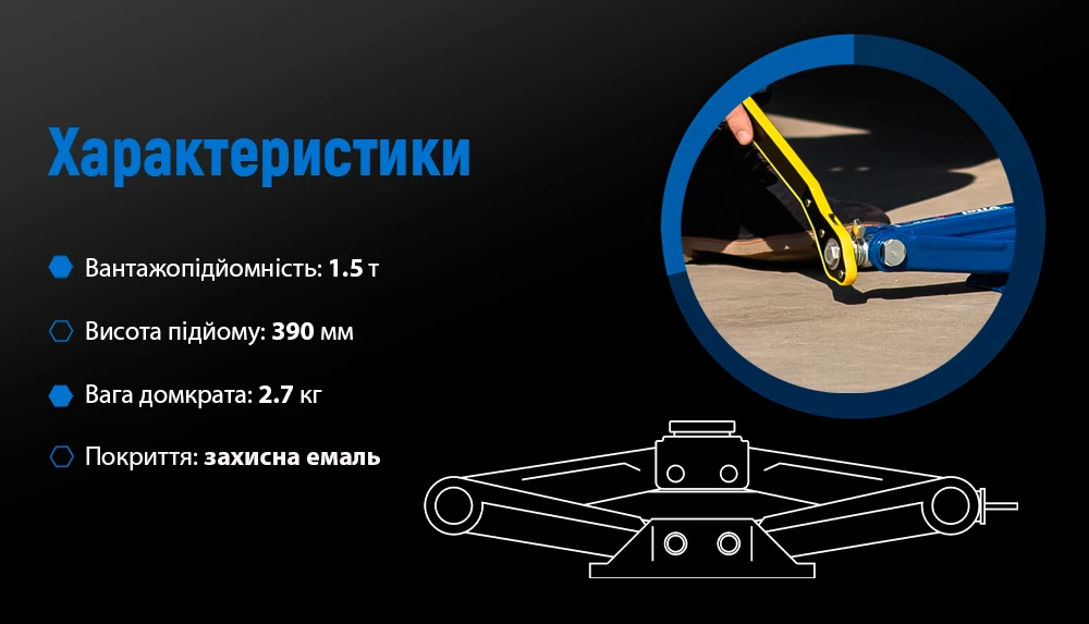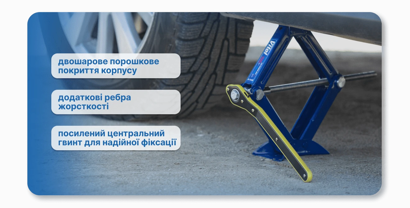 Будьте першим, хто залишив відгук на “Домкрат ромбоподібний VITOL DB-T10105B з тріщаткою 1,5 т, підйом 390 мм”