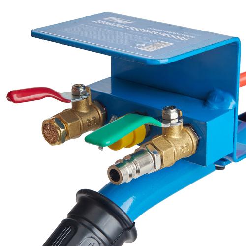 Домкрат пневматичний 3,5т, висота підйому 145-400мм, широка платформа, 16кг – це підйомний інструмент, призначений для швидкого та безпечного підйому автомобілів, спецтехніки та вантажного транспорту. Трибалонна конструкція забезпечує високу вантажопідйомність та стабільність, а збільшена широка платформа дозволяє працювати навіть із великими автомобілями, забезпечуючи впевнену опору.
