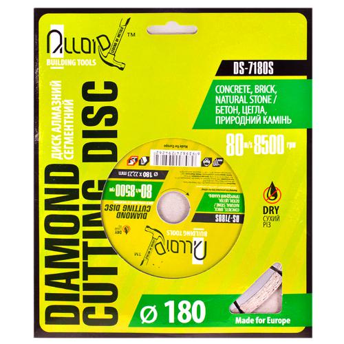 Диск алмазний відрізний сегментний Alloid DS-7180S призначений для сухої різки таких матералів як бетон, цегла, тверді та м’які породи каменю, бруківка.