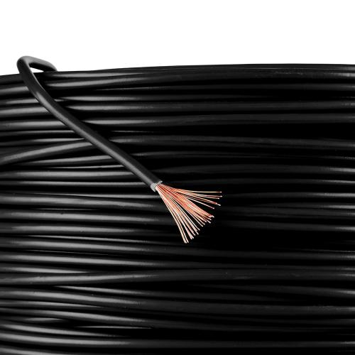 Гнучкий провід PULSO ПВ-3 1,5 мм², чорний, бухта 100 м — надійне рішення для монтажу електропроводки в побутових, промислових та комерційних об'єктах. Завдяки мідній багатодротовій жилі, провід забезпечує високу електропровідність і гнучкість.
