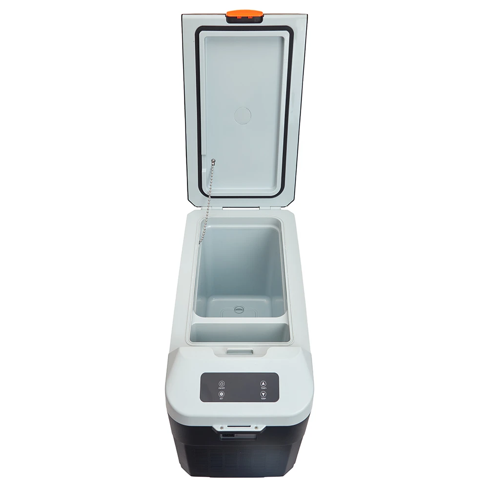 Модель оснащена інтуїтивною панеллю керування з дисплеєм, що дозволяє легко контролювати температуру та режими роботи. Міцний корпус витримує транспортування, а внутрішня камера зручна для очищення завдяки наявності зливної пробки. Використання екологічного холодоагенту R600a забезпечує ефективне охолодження при зниженому енергоспоживанні.