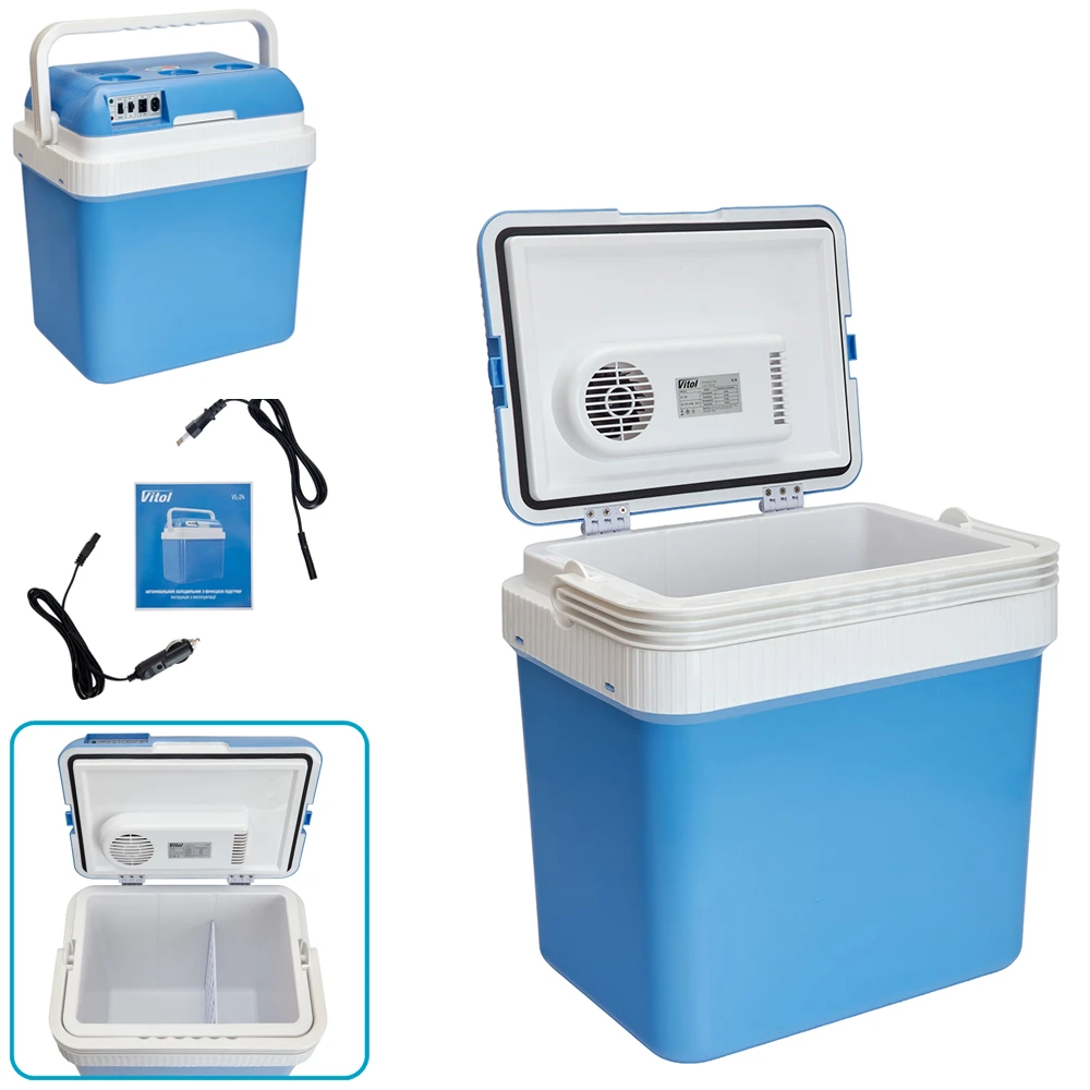 Автохолодильник Vitol VL-24 — це практичний термоелектричний холодильник об’ємом 24 літри, який поєднує функції охолодження та нагріву. Він підходить для поїздок на автомобілі, відпочинку на природі або тривалих подорожей. Завдяки універсальному живленню пристрій легко використовувати як у транспорті, так і від стандартної електромережі.