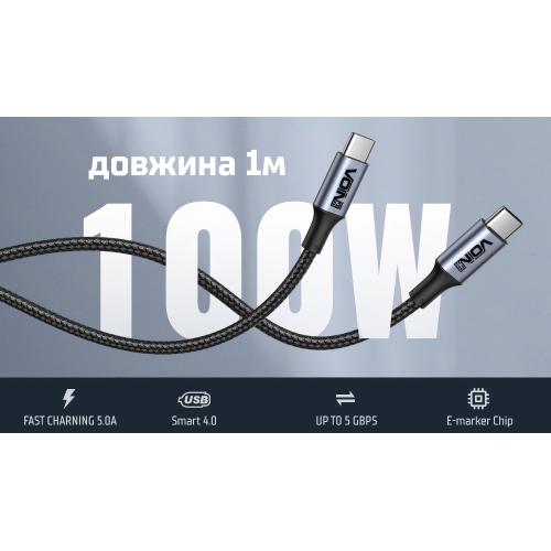Кабель VOIN VP-3501C BK c підтримкою швидкої зарядки PD2.0 100W підходить для зарядки і синхронізації вашого пристрою з інтерфейсом Type-C. Кевларовая обплетення служить надійним захистом від перегинання і пошкоджень кабелю.