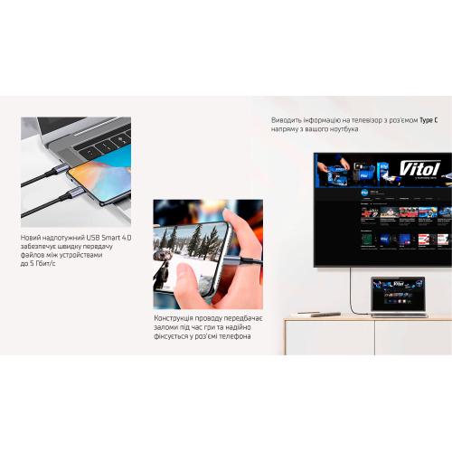 Кабель для зарядки мобільних і портативних пристроїв VOIN VP-3501C BK сумісний з усіма гаджетами, які мають роз'єм Type-C.