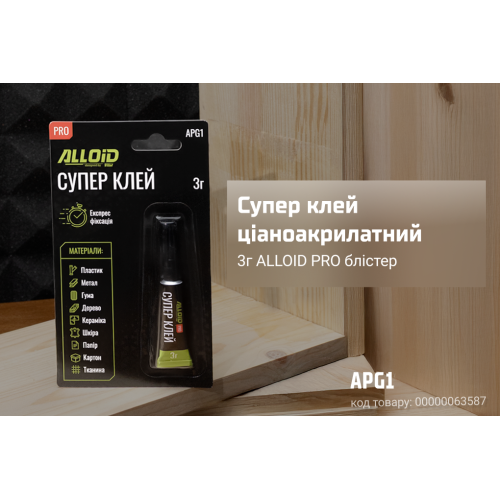 Супер клей Alloid PRO APG1 забезпечує швидке схоплювання, точне дозування та тривалу міцність з'єднання, роблячи його незамінним у побуті, майстерні та творчих проєктах.