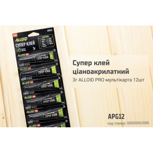 Суперклей ALLOID PRO 3 г на мультикарті 12 шт — універсальний засіб для швидкого ремонту вдома, в майстерні чи офісі.
