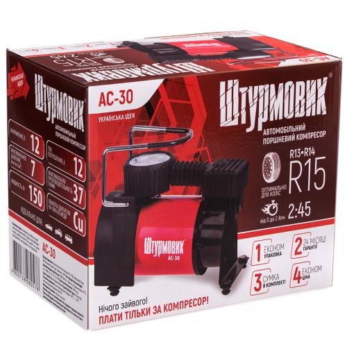 Компресор автомобільний Штурмовик АС-30 розроблений професіоналами автомобільного ринку спеціально для українських покупців.