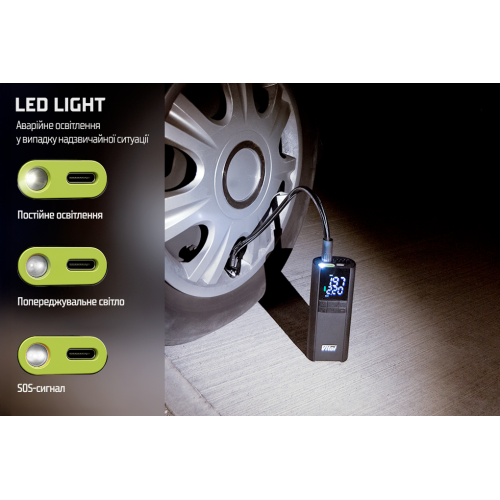 Автокомпресор Vitol K-35 3в1 — це сучасний багатофункціональний пристрій із зручним LED-дисплеєм та простим управлінням.