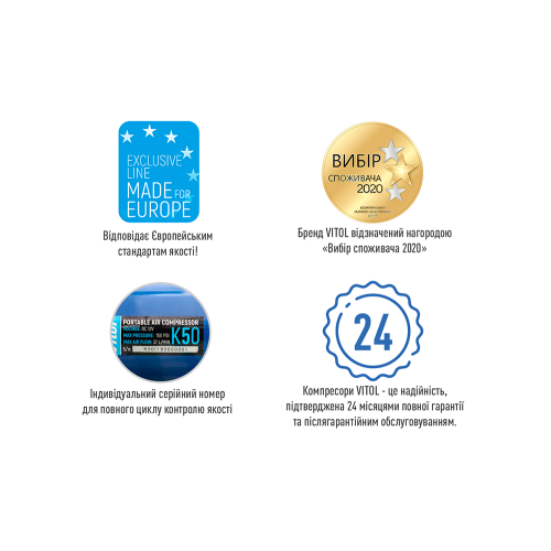 VITOL гарантує, що кожен товар виготовлений з високоякісних матеріалів і відповідає технічним вимогам. Придбавши дану продукцію, Ви отримуєте гарантію на 2 роки та післягарантійне сервісне обслуговування. Команда досвідчених техніків та фахівців завжди готова прийняти виклик і оперативно розв'язувати будь-яку проблему компресора.