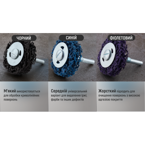 • Синій (середній) — універсальний для видалення іржі, фарби та дефектів.