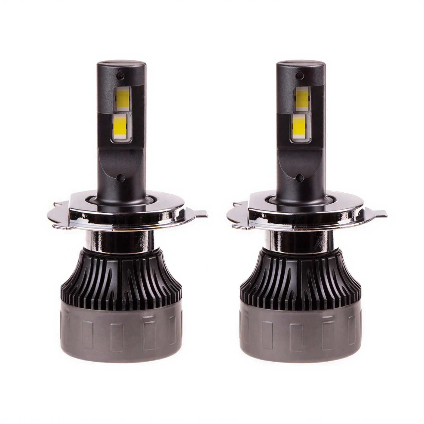 Основа ламп — чіпи CSP (Chip Scale Package), які відрізняються мінімальними габаритами при високій густині світлового потоку. Завдяки компактному розміщенню чіпів джерело світла максимально наближене до фокусної точки відбивача, що формує чітку та рівномірну світлову пляму без паразитних засвічувань і розмитих меж пучка. Конструкція лампи передбачає ефективне тепловідведення, що стабілізує роботу чіпів при тривалих навантаженнях і продовжує ресурс виробу.