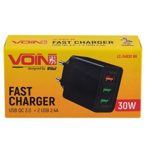 Мережевий зарядний пристрій VOIN 30W, 3 USB, QC3.0