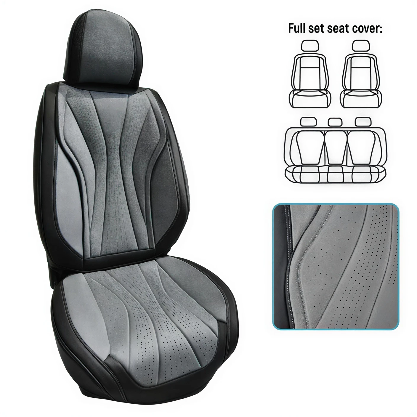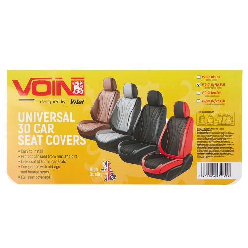 Чохли на сидіння Vitol V-9101 — універсальний комплект для захисту та оновлення салону автомобіля. Модель виконана у поєднанні сірого та чорного кольорів, що створює стриманий і сучасний вигляд інтер’єру. Матеріал із екошкіри доповнений м’якими текстильними вставками, завдяки чому чохли виглядають акуратно та приємні на дотик.