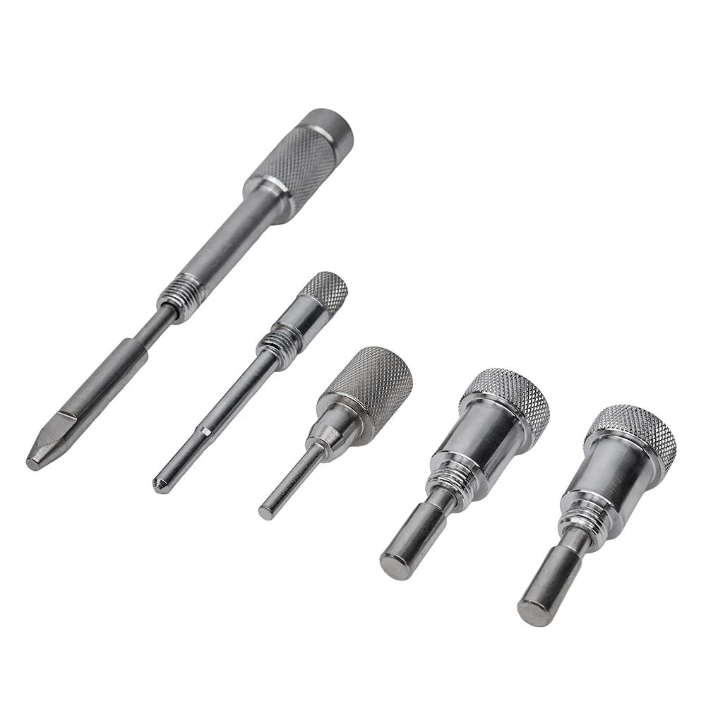 Усі елементи набору виготовлені із загартованої інструментальної сталі, що забезпечує високу стійкість до механічних навантажень і деформацій під час роботи. Форма кожного фіксатора точно відповідає геометрії посадкових місць на двигунах JTD, що гарантує коректне встановлення без люфту. Такий підхід відповідає вимогам OEM-інструменту, яким користуються офіційні дилерські СТО Fiat та Iveco.