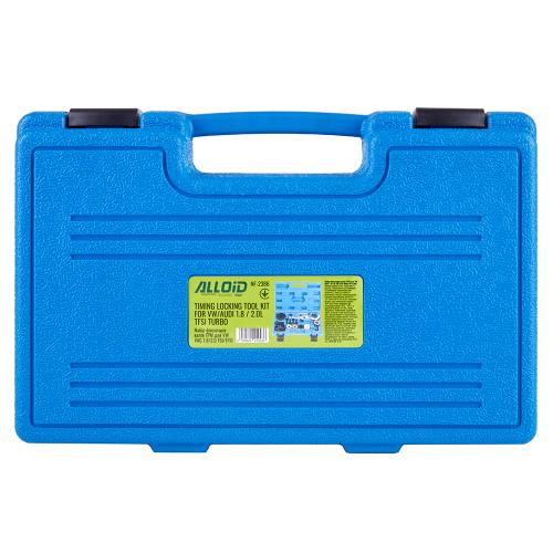Набір фіксаторів Alloid призначений для обслуговування та ремонту двигунів VW VAG 1.8/2.0 TSI/TFSI. Інструменти використовуються для фіксації розподільного вала, колінчастого вала та інших компонентів ГРМ, забезпечуючи точність налаштування фаз газорозподілу.